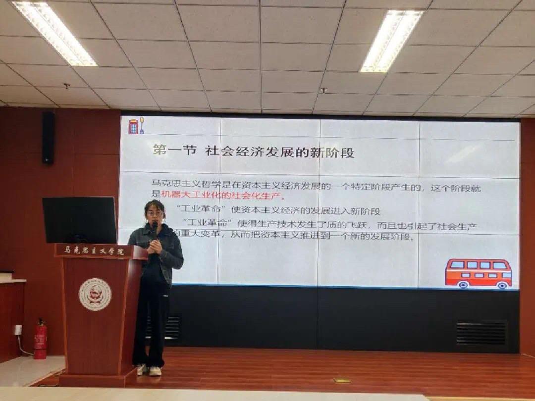 曹会会为大家解读了《马克思主义哲学史》第一卷第一章的内容:马克思主义哲学形成条件,对“工业革命是资本主义的必然产物”、“阶级斗争”,以及“自然科学发展的新成果”做了自己的分析,激发同学们读原著的热情,鼓励大家养成在原著中找寻真理的意识。