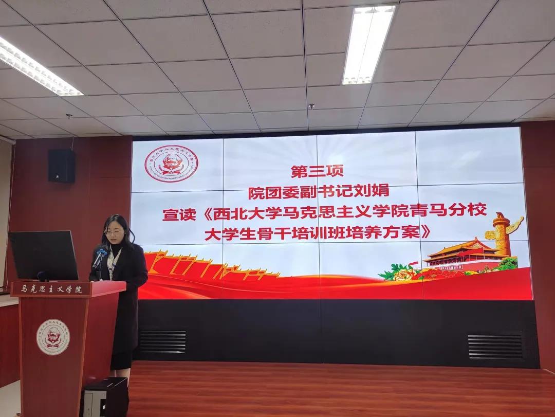 随后,院团委副书记刘娟宣读了《raybet在线官网雷竞技RAYBET最新版青年马克思主义者培养工程第一期大学生骨干培训班培养方案》,对此次“青马班”的培养目的、培养方案和考核途径等予以明确。她希望雷竞技官网全体青马学员在培训过程中珍惜学习机会、转变思想认识,模范遵守校规校纪,时时处处事事以身作则,带头讲政治、勤学习,牢固树立爱校、尊师、守纪的理念,努力成长为素质高、能力强、肯干事、能成事的青年马克思主义者。