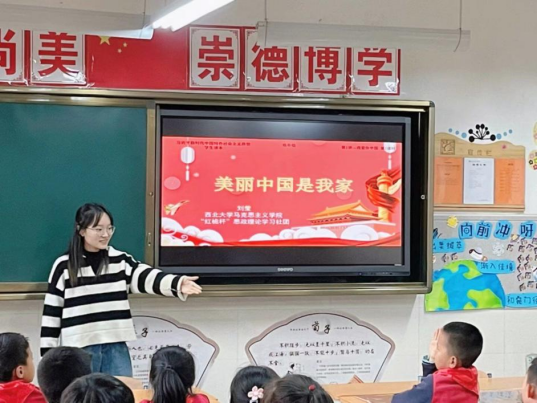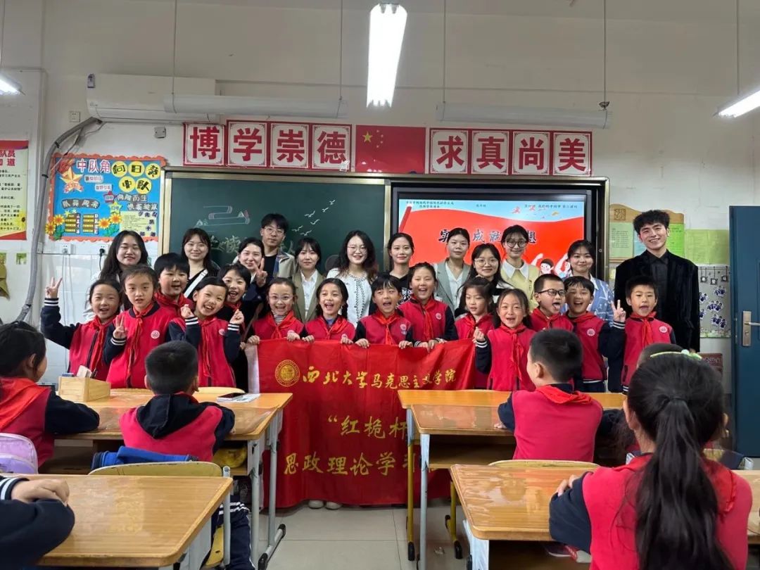 4月14日,雷竞技官网“红桅杆”思政理论学习社团在raybet在线官网附属小学,以《习近平新时代中国特色社会主义思想学生读本》(小学低年级)为主要内容,为二年级的小学生上思政课。主讲人分别是来自21级和22级的马克思主义基本原理、思想政治教育、马克思主义中国化研究与中国近现代史基本问题研究专业的12位硕士研究生。
