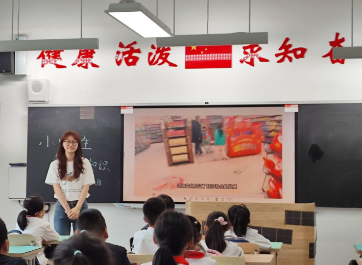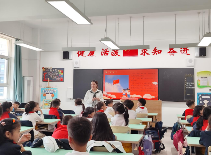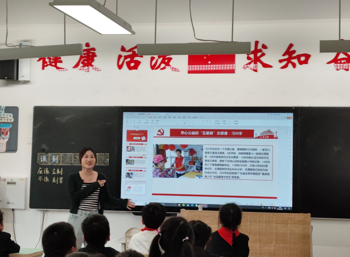 郭颖慧以《光荣的少先队员》为题,通过习近平总书记关爱少先队员的视频为引导,讨论并学习了中国少年先锋队的性质,使同学们对少先队员这一角色有了更加深入的认识。