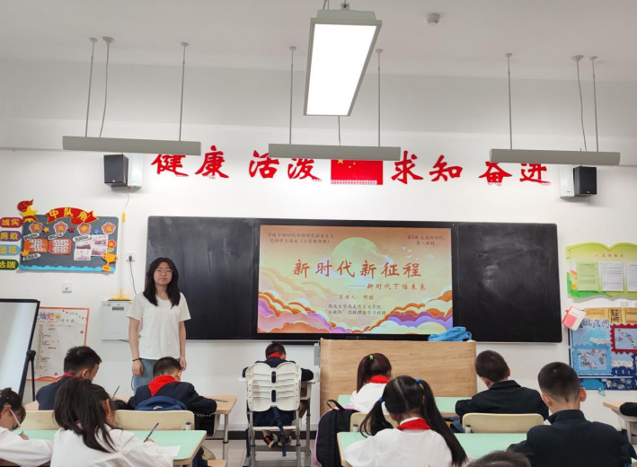 4月22日,雷竞技官网红桅杆思政理论学习社团在西安市长安区第一小学实验小学,以《习近平新时代中国特色社会主义思想学生读本》(小学低年级)为主要内容,为二年级的小学生讲授思政课。主讲人分别是来自2022级和2023级的马克思主义基本原理、马克思主义中国化研究、思想政治教育与中国近现代史基本问题研究专业的12位硕士研究生。