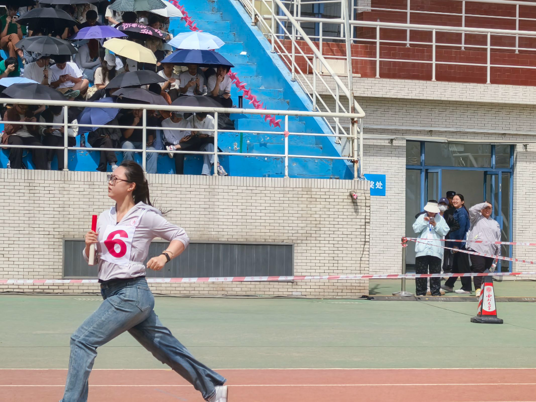 跑道之外,由9名同学组成的啦啦队点燃了看台上同学们的热情,舞动的身影与动感的音乐交织成一幅绚丽的画卷。她们用活力四射的现代舞为运动员们加油喝彩,注入了澎湃的活力。