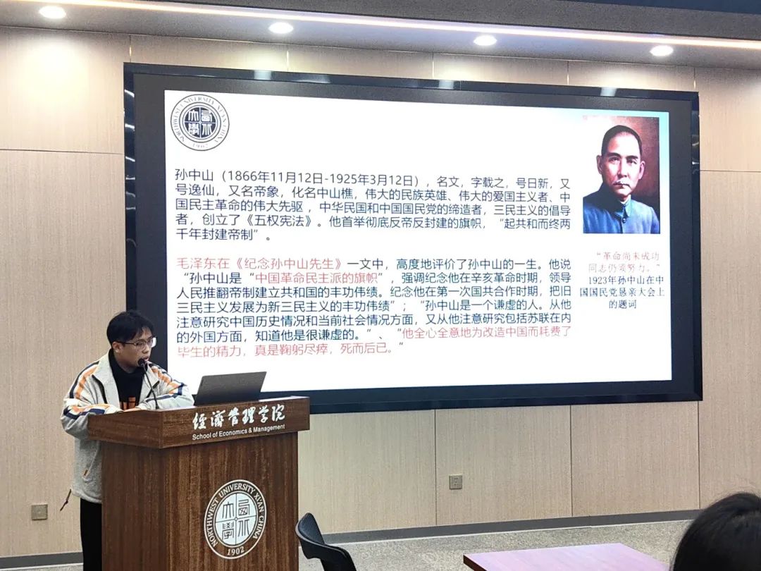 3月17日,雷竞技官网红桅杆思政理论学习社团为校青马先锋3班及经济管理学院红石榴协会的成员讲授专题党课,本次党课的主讲人为2024级马克思主义基本原理专业的硕士研究生魏平方。