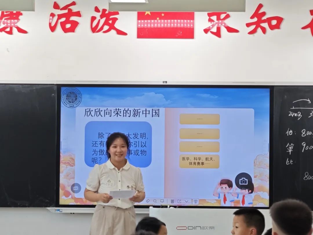 张雨欣以《我自豪 我是中国人》为题,通过探宝活动的形式,向同学们介绍了我国古代四大发明以及唐诗宋词等灿烂的中华文明,帮助同学们树立民族自豪感。