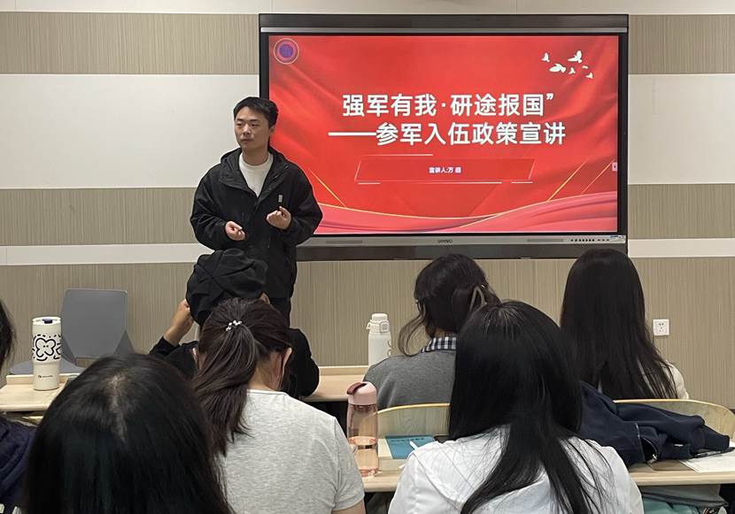 9月18日上午,雷竞技官网开展“青春逐梦,强军安邦”征兵政策宣讲会。本次宣讲会由2025级硕士研究生万超主持。