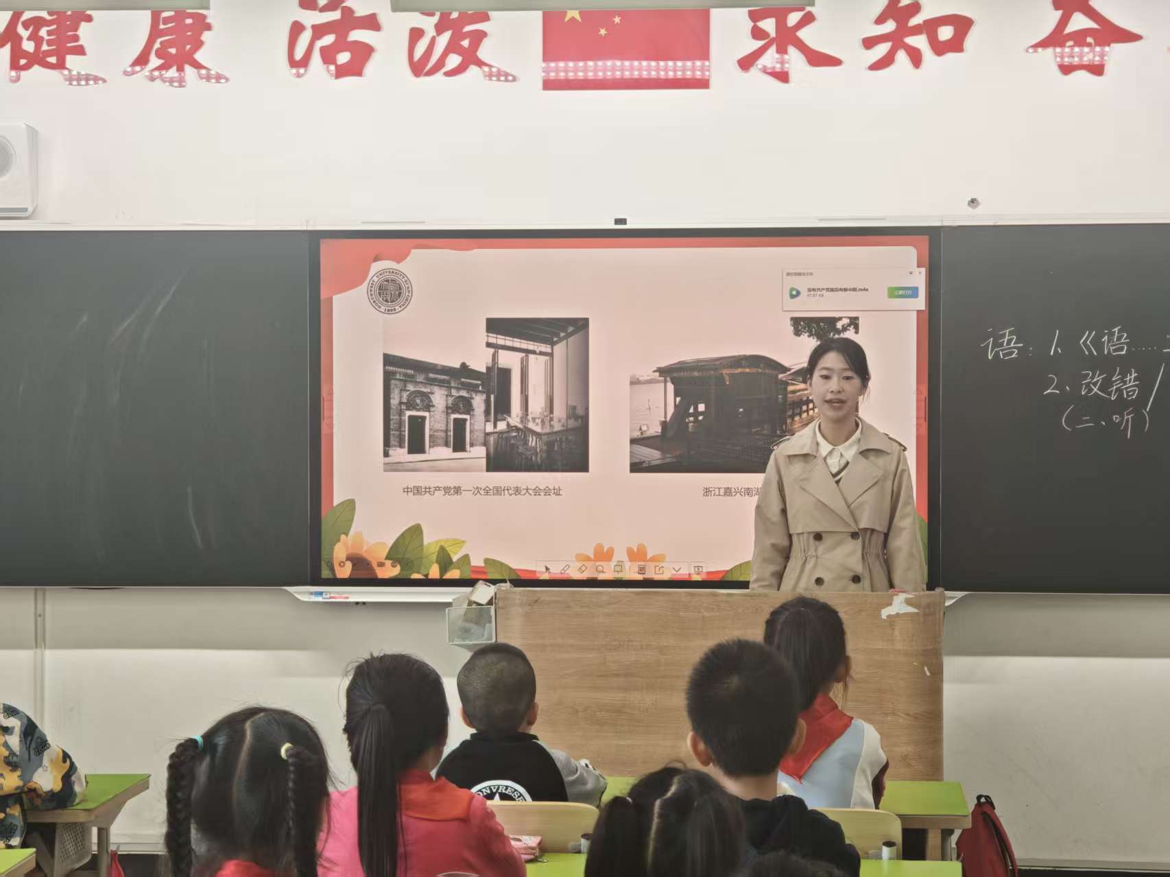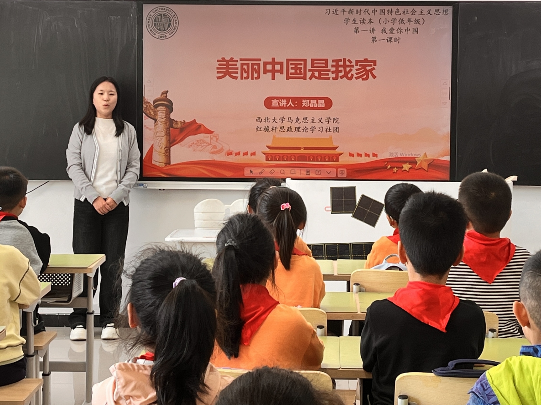 郑晶晶以《美丽中国是我家》为题,通过对国旗、国歌、国徽以及中国丰富资源的了解,学生们不仅加深了对国旗、国徽和国歌的理解与敬意,更在心中种下了爱国的种子。