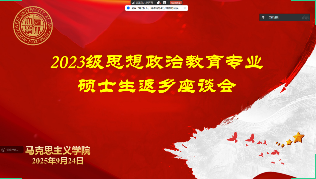 卢丽娟首先指出,毕业班同学当前的核心任务是全力以赴完善毕业论文,并积极应对求职就业的关键选择。她提醒大家尽快调整状态,将假期见闻转化为前进的动力,也希望同学们能够互帮互助、信息共享。同时,她进一步强调,在求职与毕业并行的关键阶段,大家要科学规划时间,注意劳逸结合,珍惜研究生阶段最后的宝贵时光,走好毕业前的“最后一公里”。