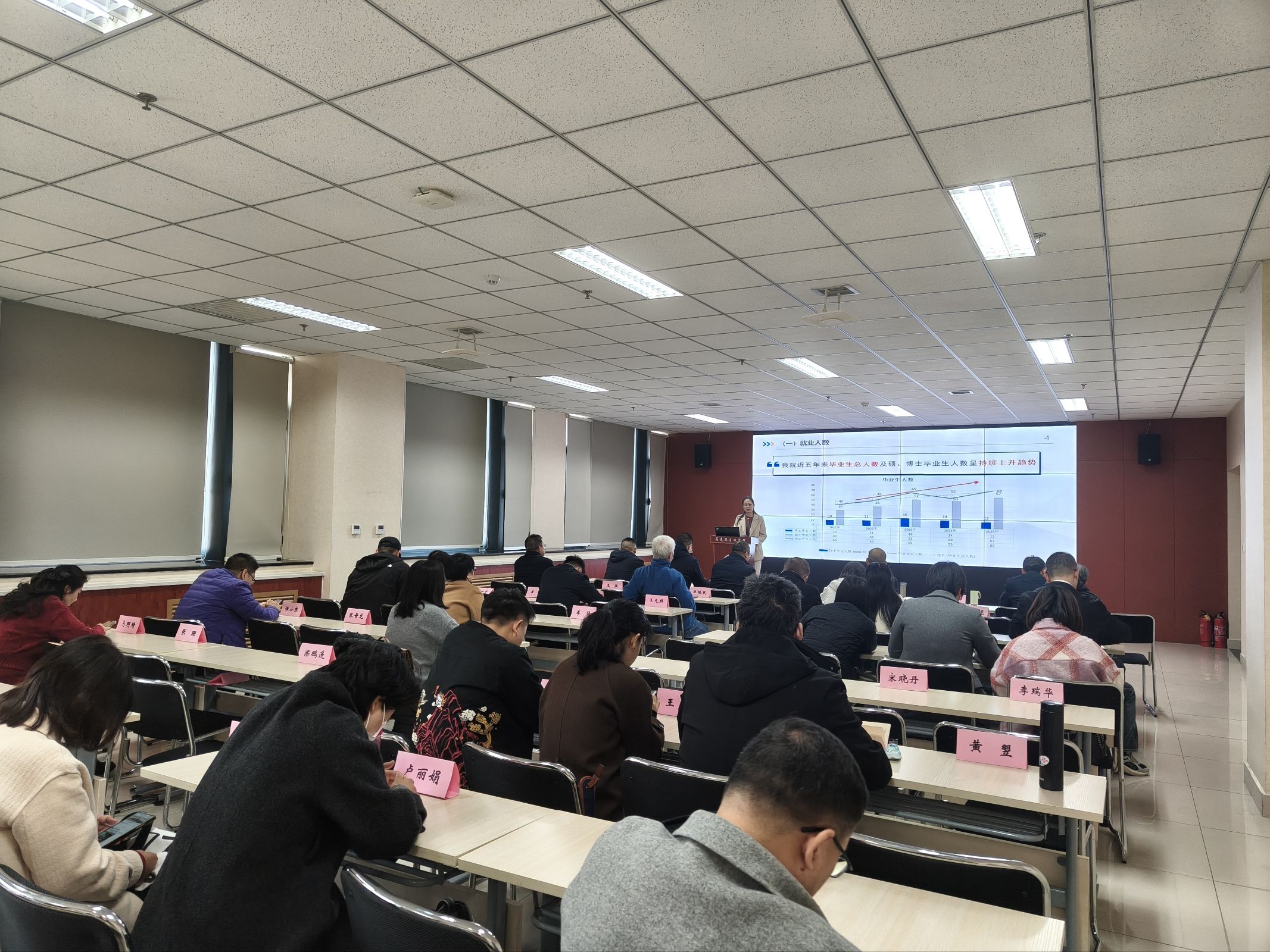 11月12日下午,雷竞技官网在学术报告厅召开就业工作推进会,学院班子成员、全体教职工与“一站式”学生社区19号楼第二党支部参加。会议由党委副书记邵平主持。