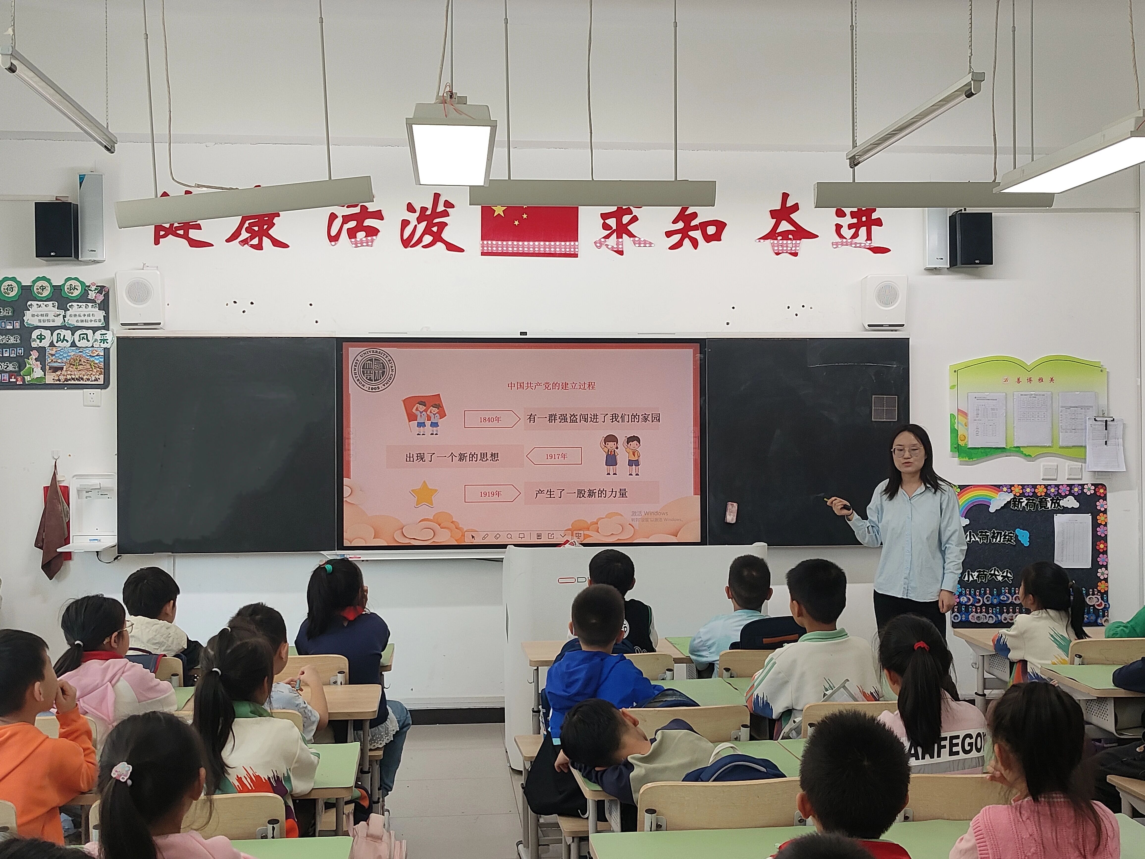 柳佳茹以《没有共产党就没有新中国》为题,和同学们一起回顾了中国共产党带领人民抵御外强、建立新中国的光辉历程,鼓励同学们要为实现中国梦贡献自己的力量。