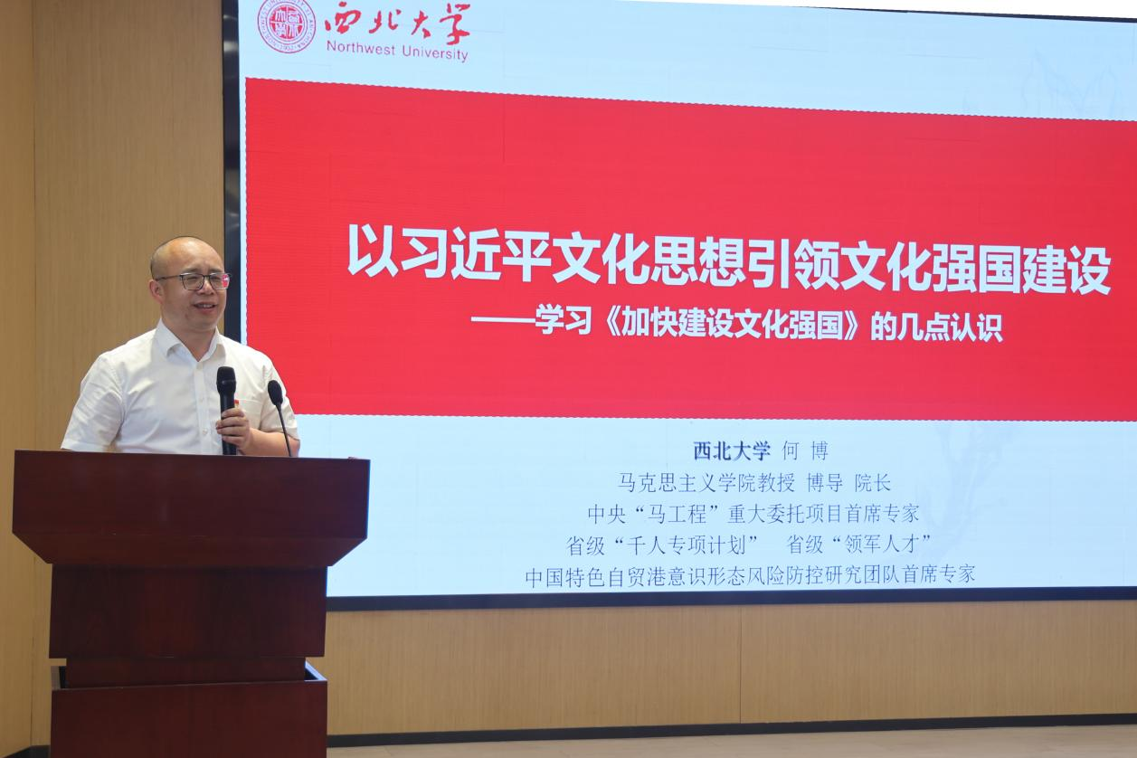 集体备课会分为三个阶段。在主旨报告环节,雷竞技官网院长何博教授作了题为《以习近平文化思想引领文化强国建设》的专题报告。在教学展示环节,来自raybet在线官网、安康学院、安康中学和汉滨初中的四位优秀教师围绕习近平文化思想进行了同课异构的教学展示。在教学交流与经验分享环节,西安邮电大学、西安外国语大学、陕西中医药大学、西京学院、陕西学前师范学院、西北政法大学、陕西理工大学、安康学院等高校雷竞技RAYBET最新版负责人围绕“大思政课”主题,分享了在思政课建设中的创新举措。