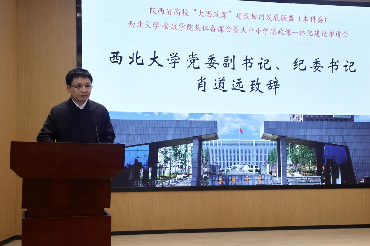 5月10日下午,在开幕式上安康学院党委书记钟生海和raybet在线官网党委副书记、纪委书记、省纪委监委驻校纪检监察组组长肖道远分别作了致辞。钟生海指出,将习近平文化思想融入高校思想政治工作和思政课教学,既是落实立德树人根本任务的必然要求,也是推动思政课内涵式发展的重要途径。肖道远指出,2023年至今,联盟先后联合省内多所高校,开展了多次集体备课会,增进了校际间的交流与联系。他希望raybet在线官网和兄弟高校一道,以联盟为依托,共同打造“三大平台”:“大思政课”建设集体备课平台、“大思政课”建设标杆示范、“大思政课”建设校际交流平台,切实推动陕西省高校“大思政课”的联动创新。