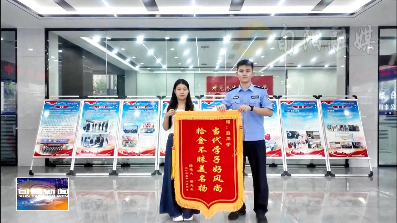 8月5日,蔚晨阳在路过广场时,偶然发现了一个遗落的手提袋,在查看过后发现袋内装有钱包、工具及8000余元现金。考虑到丢失的物品十分贵重,蔚晨阳在原地等待了半个多小时,但是失主却一直没有现身,于是她便携带袋子到城关派出所报警求助。接到报警后,民警快速核查信息,精准联系到了失主,最终在警方的快速办理下所有物品完好无损、如数归还。失主对蔚晨阳同学拾金不昧的行为表示感谢,并提出给予酬谢,但被蔚晨阳同学谢绝,次日失主制作了一面锦旗通过公安局送给了蔚晨阳同学。