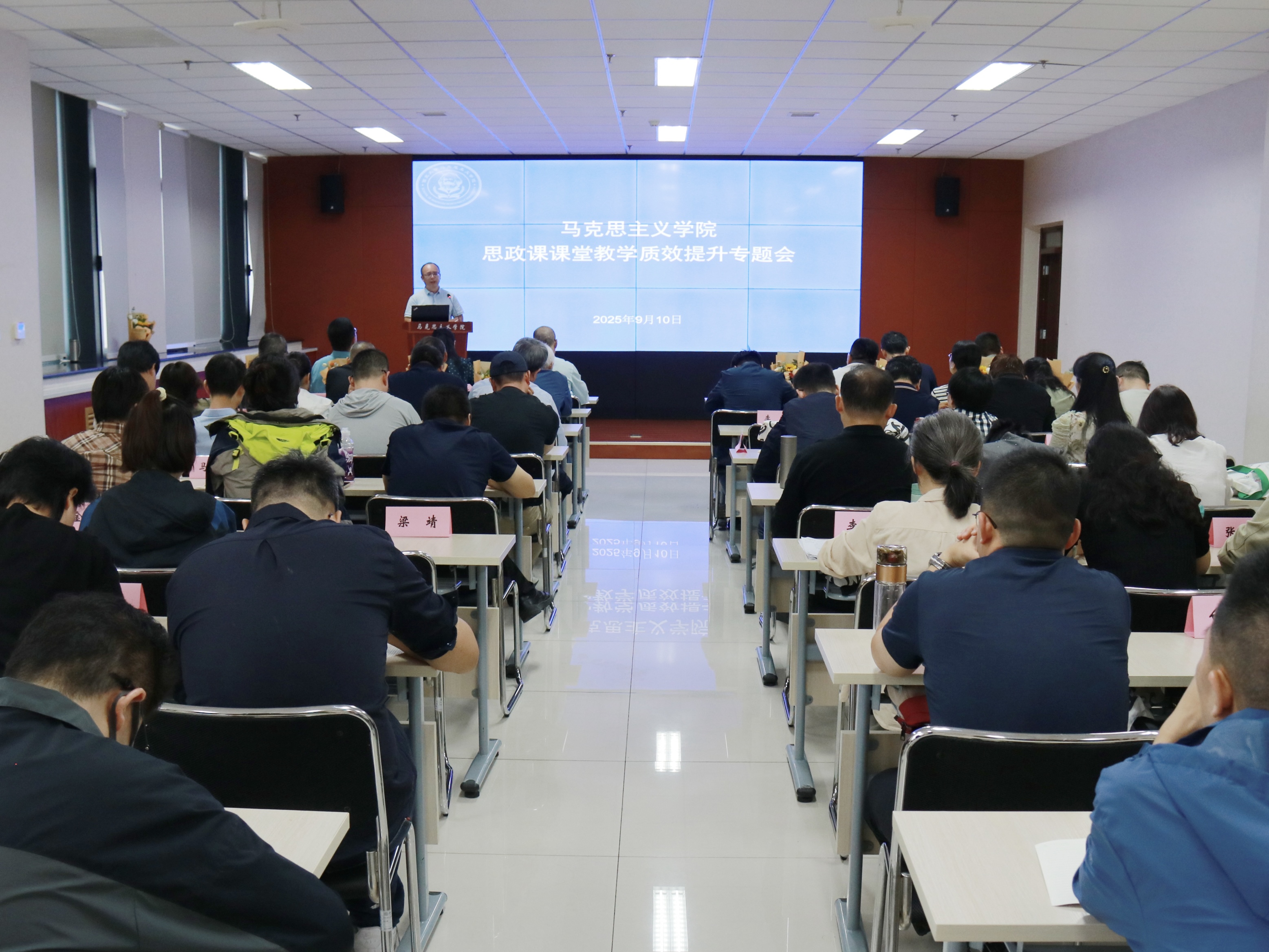 9月10日下午,雷竞技官网召开思政课课堂教学质效提升专题会。学院班子成员、全院思政课教师和有关工作人员参加,会议由院党委书记韩凯峰主持。