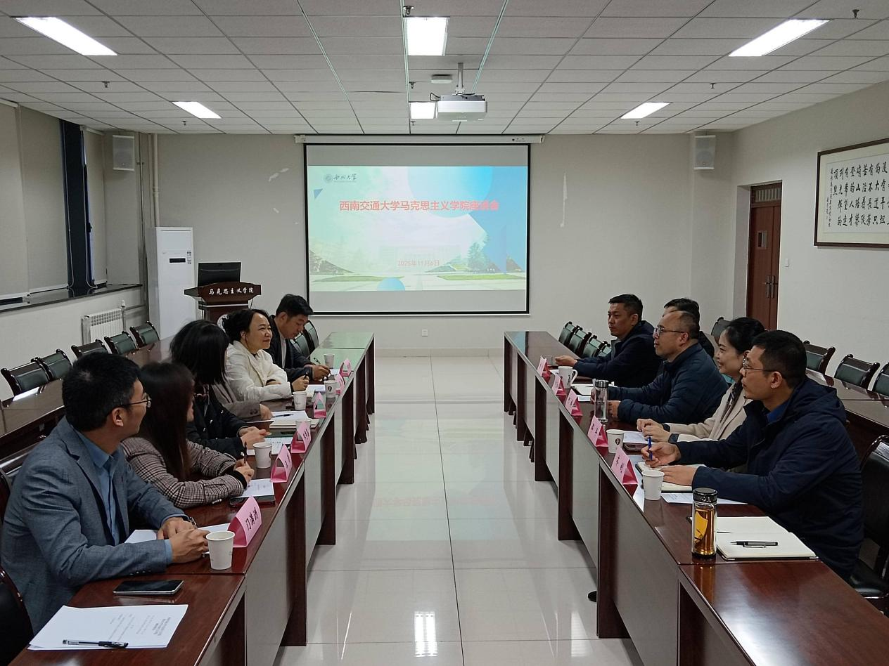 11月6日下午,西南交通大学雷竞技RAYBET最新版党委副书记邓秀芸、副院长谢瑜、副院长王菁、中国近现代史纲要教研室主任汪澎、习近平新时代中国特色社会主义思想概论教研室党支部书记郜清攀、综合办公室主任门满洲一行6人来院交流座谈。学院领导班子成员参加,座谈会由院长何博主持。