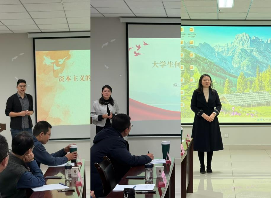 本次思政课教师“大练兵”省级展示活动参与者张天啸、张珊和第四届全国高校思政课教师教学展示活动参与者马珂琦等三位青年教师围绕各自课程教学设计,通过模拟课堂的形式展示了教学重点内容,充分展现了各自的教学风采。