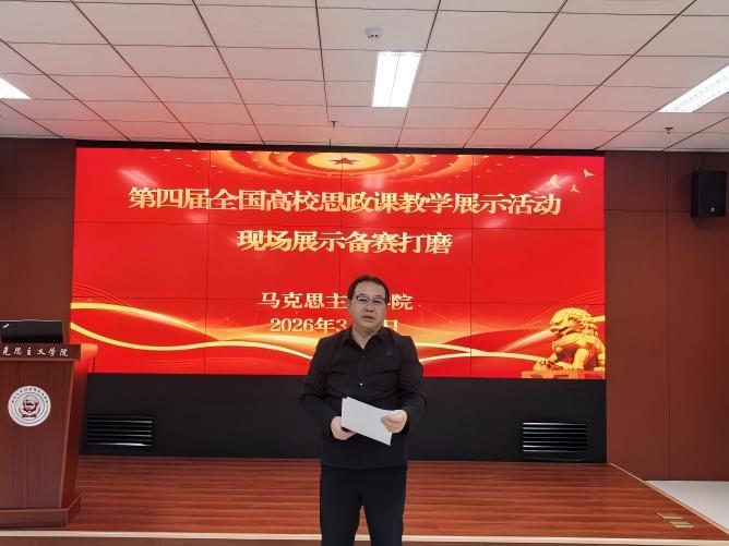 董国强在总结讲话中,传达了学校党政主要领导对思政课建设的高度重视与全力支持。他充分强调本次备赛打磨会,鼓励马珂琦老师保持定力、增强自信,在全国平台上展现良好风采。同时,他还结合当前思政课建设面临的新形势、新风险、新挑战,围绕加强思政课教师队伍建设、提升课程建设质量、整合校内优质资源、打造思政精品课程等重点工作谈了很好的指导意见,强调要持续提升思政课课堂教学质效,更好地发挥思政育人功能。